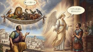この箇所の意味を考える前に、この前置きとなっているのが、使徒の働き10章に描かれている、ペテロがローマ人百人隊長コルネリウスから招かれ、彼の家を訪ね、コルネリウスがペテロの語る福音によってイエスさまを信じるっていうエピソードがあります。ペテロと異邦人百人隊長コルネリウスとのエピソードは、キリスト教の歴史においてまさに、「コペルニクス的展開」とも言える極めて重要な転換点です。ここでペテロに起きた出来事は、キリスト教の世界的な宣教の拡大にとって、まさに革命的な出来事となりました。